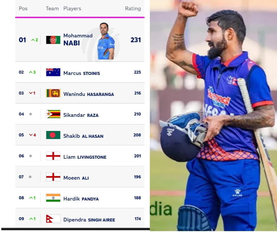 असार ५, २०८१महेन्द्रनगर संवाददाता इन्टरनेशनल क्रिकेट काउन्सिल (ICC) ले जारी गरेको T20 क्रिकेटको नयाँ सूची अनुसार,थप जान्नुहोस्